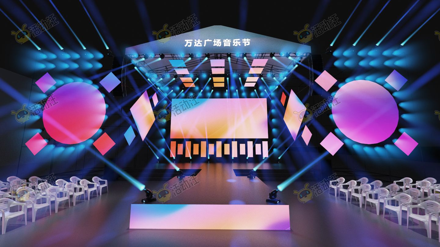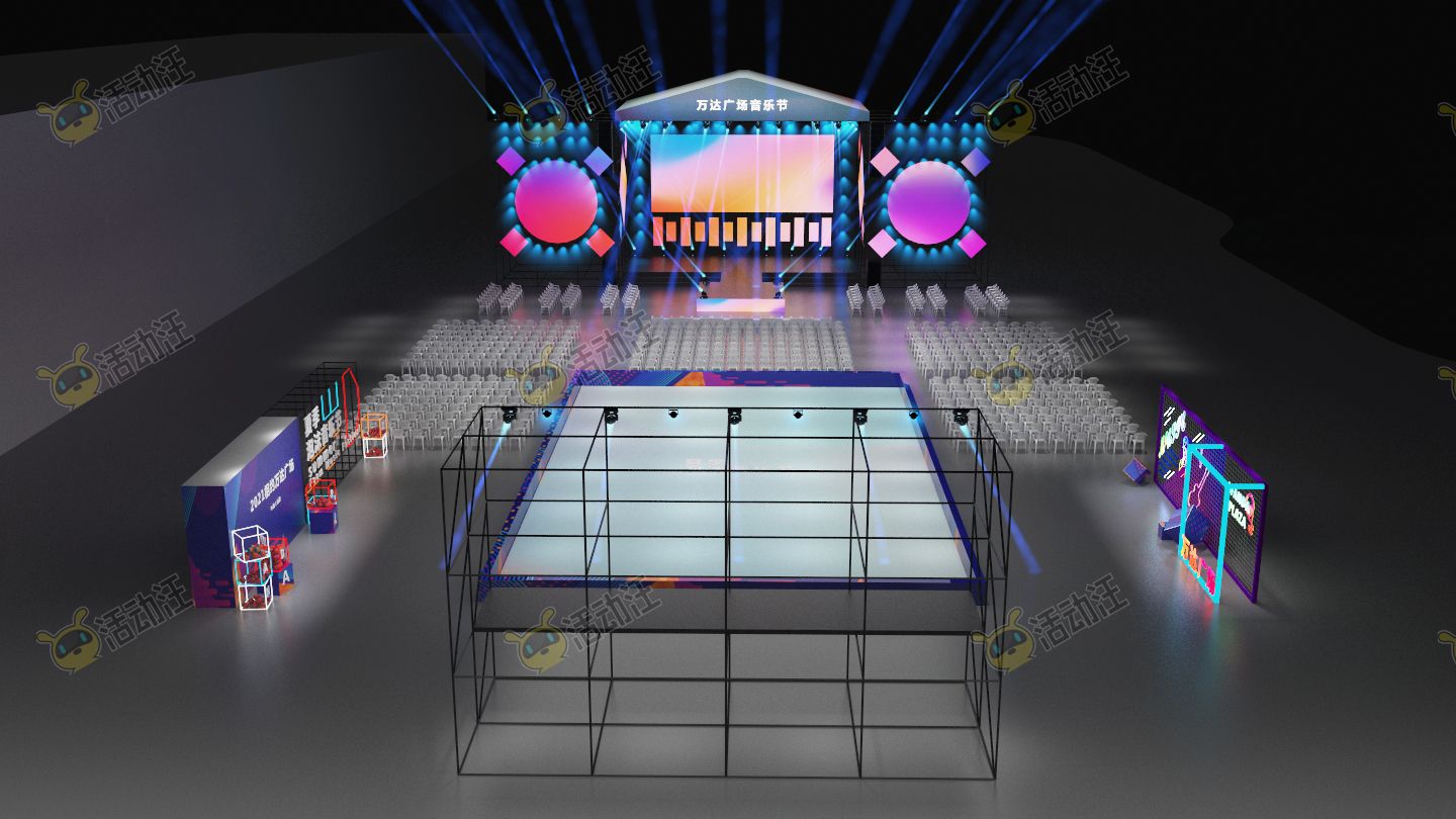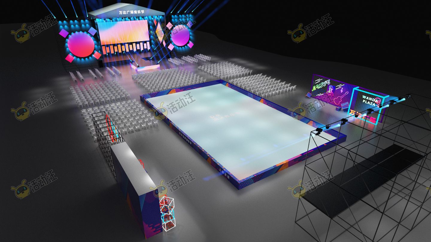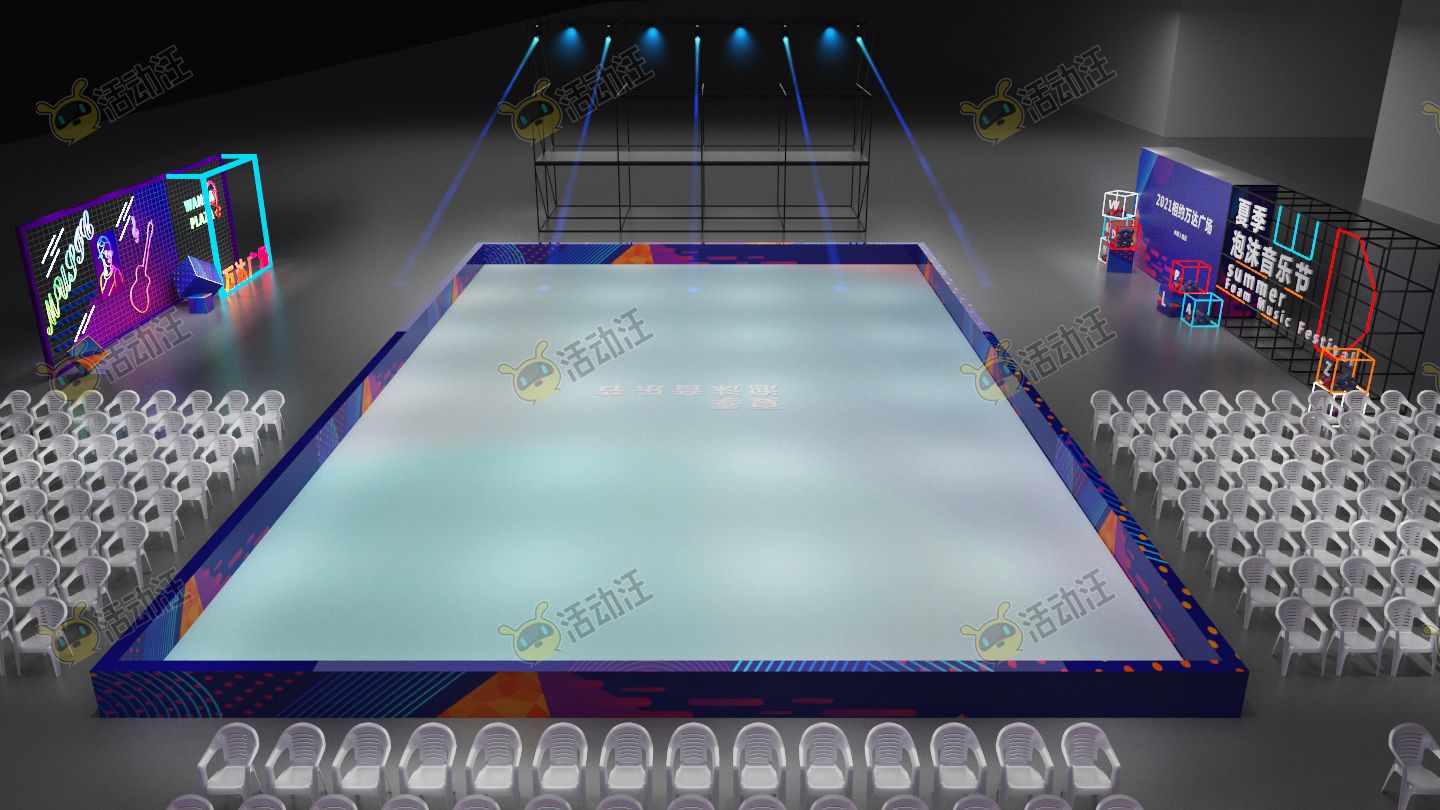 夏季泡沫音乐节主题活动全案模型及效果图,时尚氛围舞台,时尚迎宾签到造型
