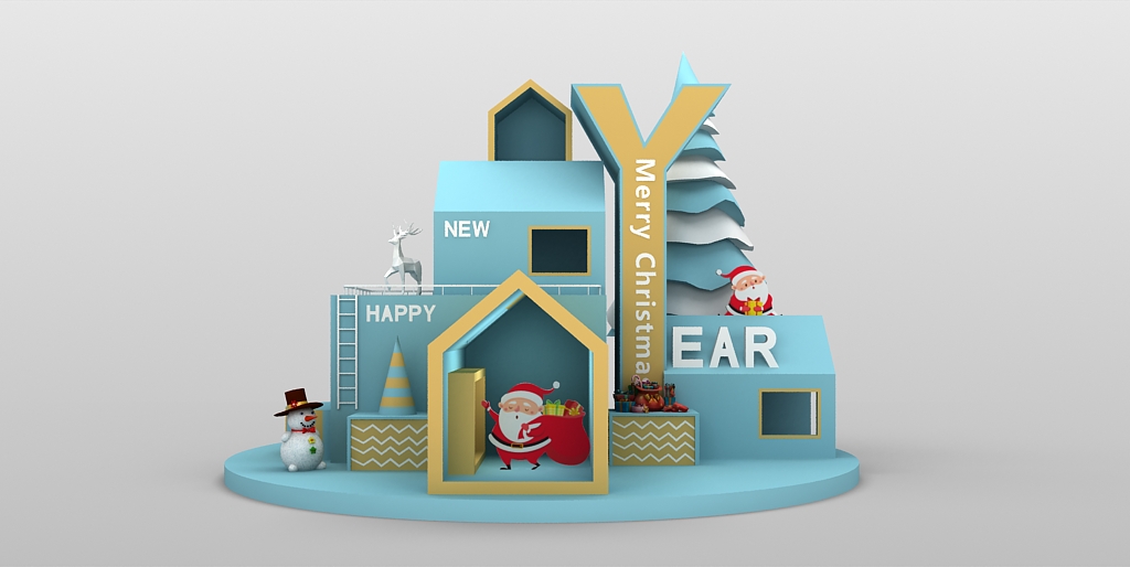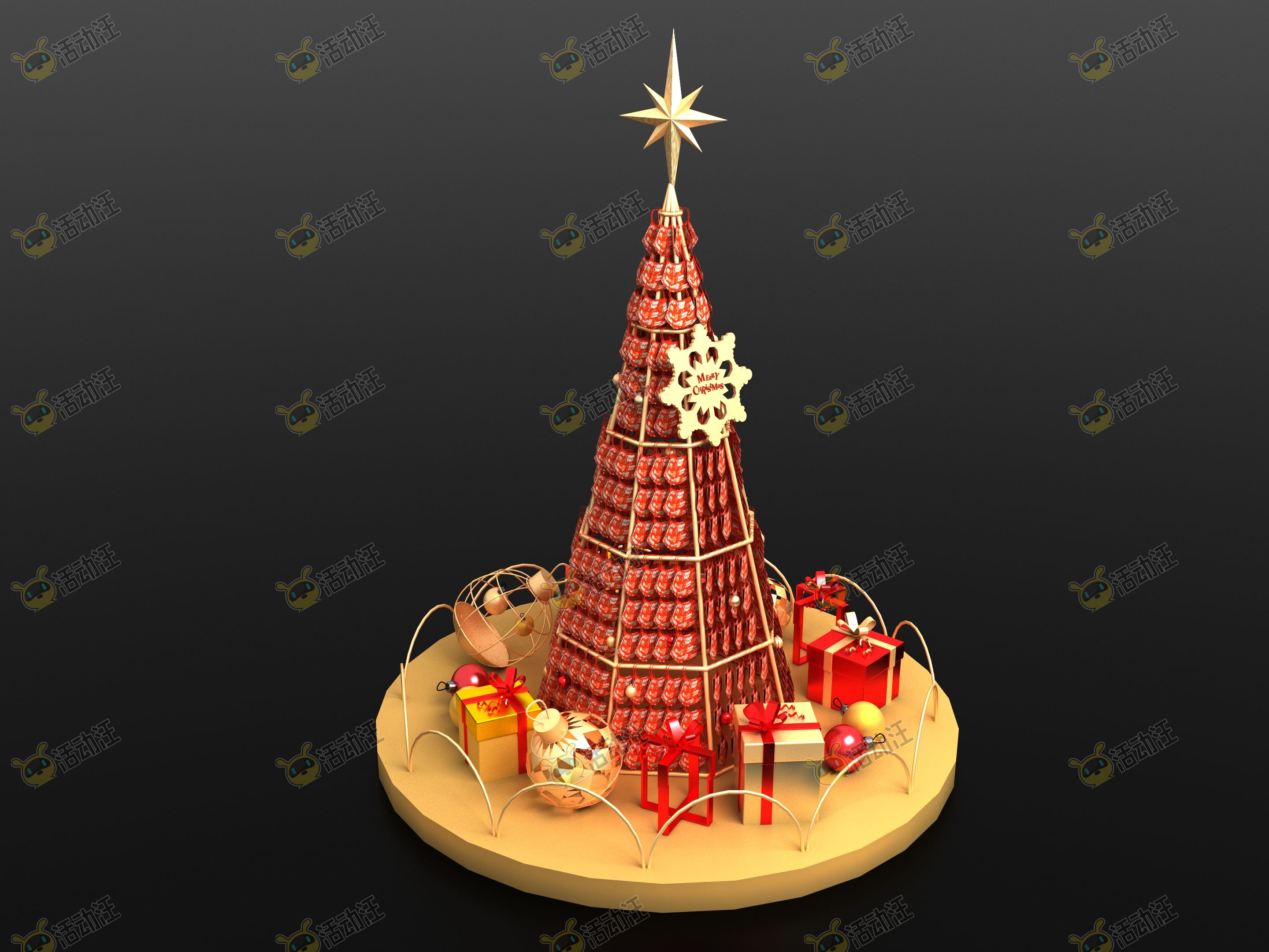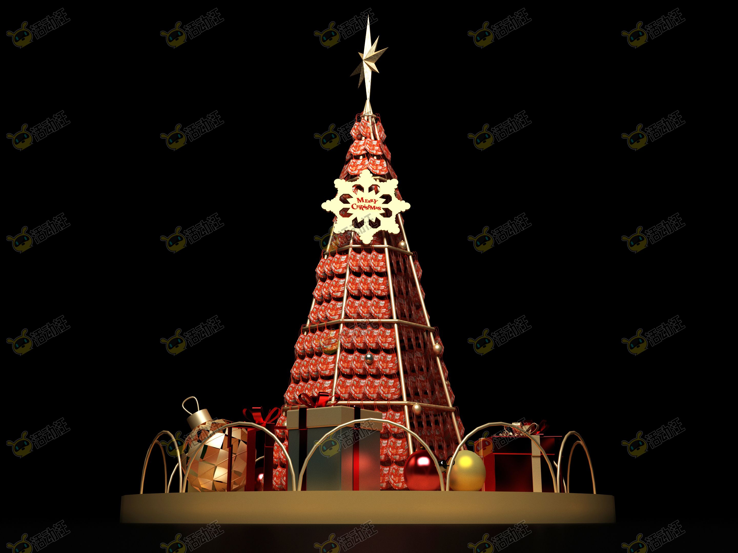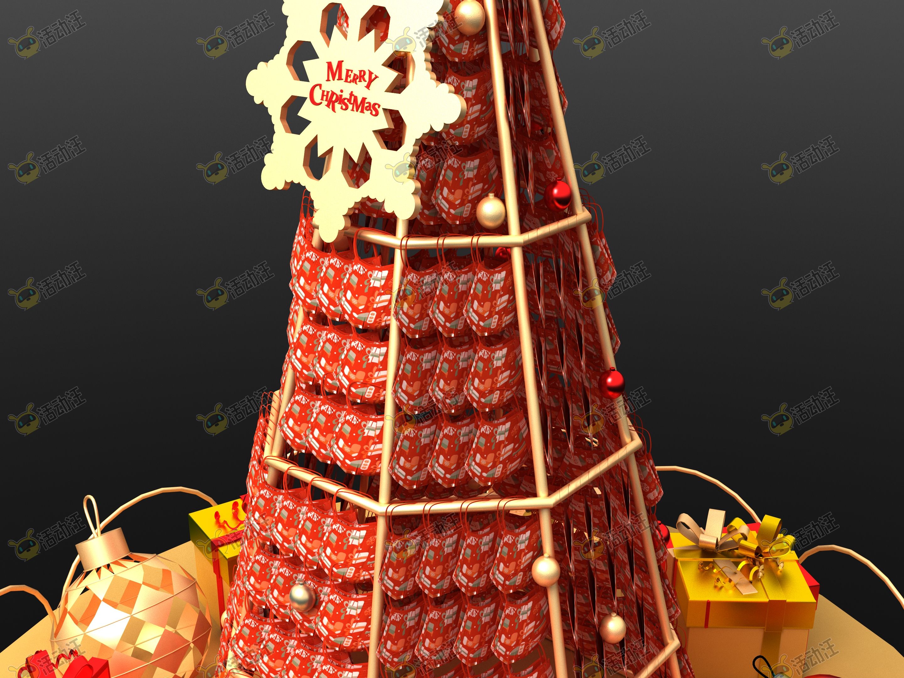 中庭圣诞节口罩圣诞树主题美陈效果图